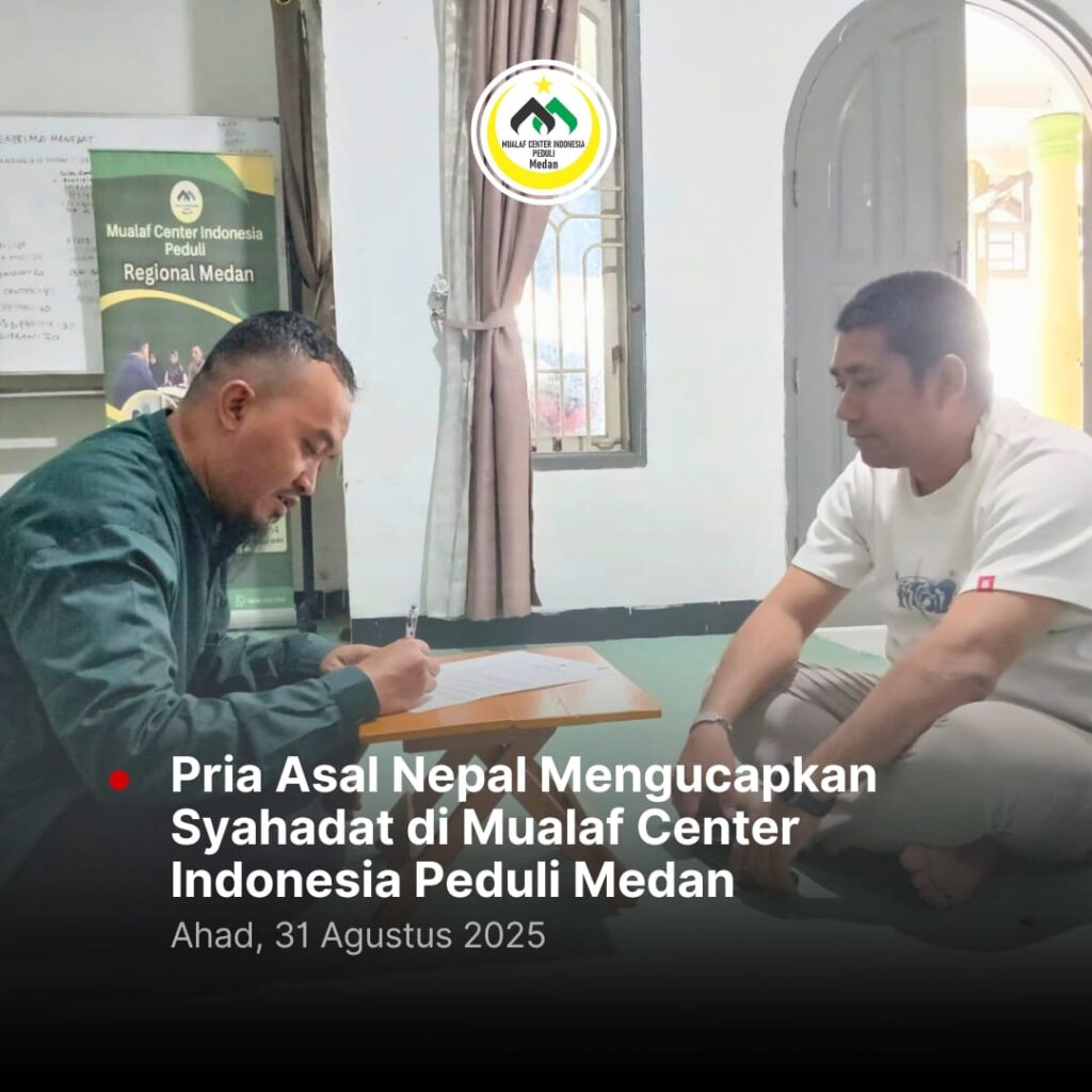 Medan, 31 Agustus 2025 – Mualaf Center Indonesia Peduli (MCIP) Medan kembali menyaksikan momen haru. Seorang pria asal Nepal, Santosh Shresta (39 tahun), resmi memeluk Islam setelah mengucapkan dua kalimat syahadat.